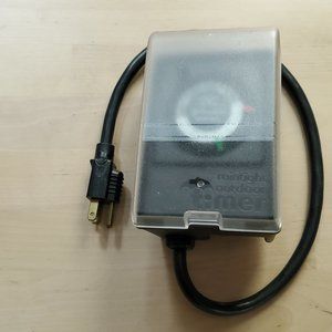 Intermatic Outdoor timer. Cover protects the timing unit and their is an exterior 3 prong plug for your electic needs and a 3 prong for your exterior outlet to your home or garage. Ligtly used in very good condition. Capable of being hung on a surface. Has slotted back for the hanging.