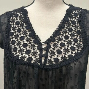 Rain blouse Black Size M 100% polyester Front length 25-1/2” Back length 27” Short sleeve Pit to pit 20”