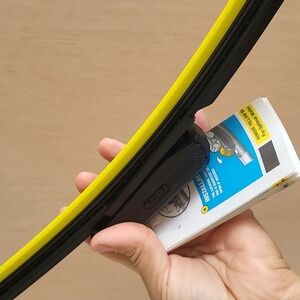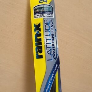 Rain-X Latitude wiper blade in yellow and blue packaging. Ideal for clear visibility.