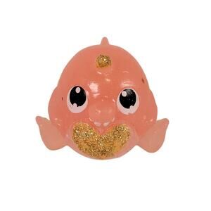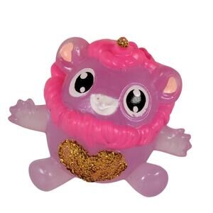 Lot of 3 Rainbocorns mini collectible figures with glitter heart designs. Includes a pink lion, purple bird, and peach fish. Each figure is approximately 1 inch. Great for collectors or display. Some minor wear due to handling. See photos for details.