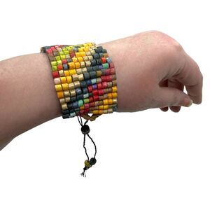 Rainbow Beaded Bracelet Pull Tighten Handmade Woven Adjustable Lightweight Boho