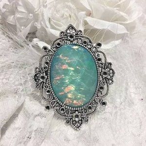 Rainbow Blue Moonstone FIre Opal Victorian princess Fantasy glass art Mythical Necklace Altered Art