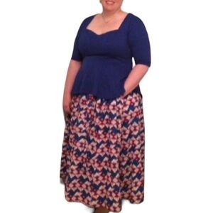 Rainbow Blue, White and Maroon Full Circle Maxi Skirt