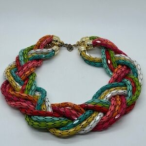 Vibrant and stylish, this multicolor braided necklace adds a pop of color to any outfit. Perfect for any occasion.