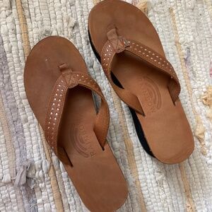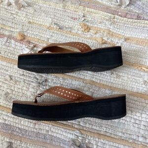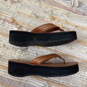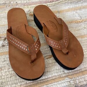 Rainbow Brown Wedge Leather Sandals with Swarovski Crystals