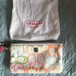 Approximately 7.5 inches in length. Decent amount of wear and not as vibrant white as it once was, but still has lots of use left! Authentic Coach. Includes dust bag.