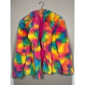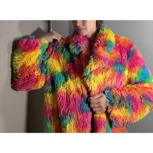Rainbow Camo Shaggy Faux Fur Rave Jacket size M/L