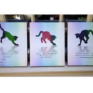 Rainbow Cats triptych three (3) panels, Giclee, Canvas Wall Art Movie Prop Art