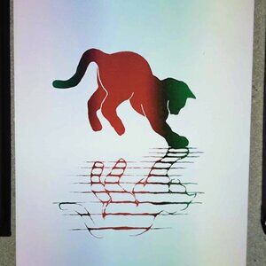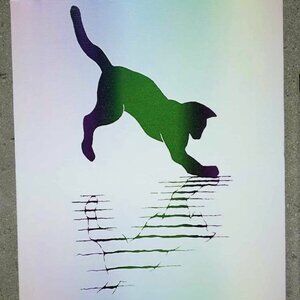 This is such a FUN and whimsical combination of vintage and modern and would add those elements to any environment...especially where cats and cat people dwell.