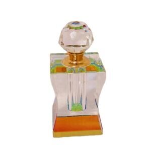 Rainbow Faceted Clear Prism Crystal Perfume Fragrance Oil Empty Bottle with Twist Stopper Dauber Cut Art Glass Figurine, Refillable, 3D square, blue green colors