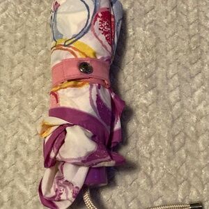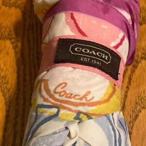 Authentic colorful Coach, compact umbrella in excellent condition! Comes with attached wrist strap. From smoke free home.