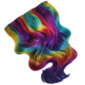 Rainbow Colored Clip in One Piece Human Hair Extensions