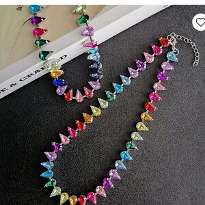 Rainbow Crystal Necklace Chakra Colorful Choker Party Festive Club Holiday NWT