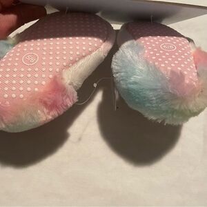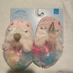 Rainbow Daze rainbow faux fur fuzzy unicorn slippers kids size 5-6