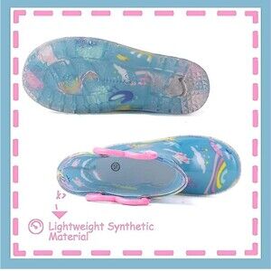 COMFORTABLE & LIGHTWEIGHT: In order to bring much more fun to your kids that these rain boots are made from a soft, flexible PVC that let kids run, skip, and jump in puddles without feeling stiff and constrained.