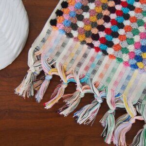 Rainbow Double Sided Pom Pom Turkish Hand Towel