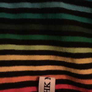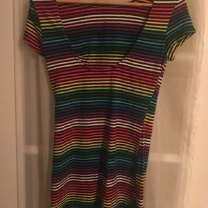 Very cute rainbow dress with a scoop back. Stretchy cotton material.