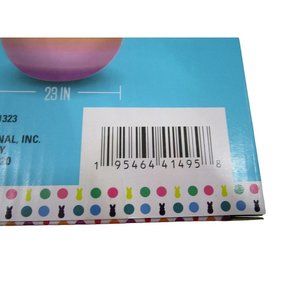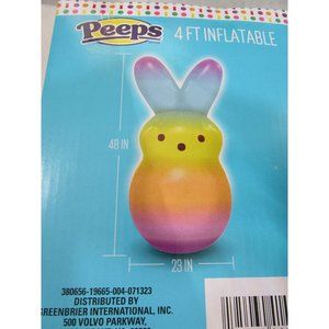 Brighten up your Easter celebrations with this vibrant Pastel Rainbow Inflatable Easter Bunny Peep. Standing at 4 feet tall, this bunny peep is designed with a captivating pastel rainbow ombre effect. It's brand new, comes in its original packaging, and is ready to put a colorful spin on your festivities. Measures 23" wide, 48" tall. Use indoors or out. Perfect for your Easter tablescape or Easter Basket accessory. Just Born, Inc. Box measures 8.5" by 6.5" by 1.5"