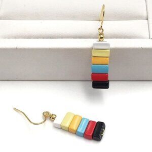 Multi-colored Rainbow Enamel Beads Drop Earrings