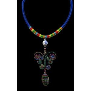 Add a touch of magic to your outfit with this Rainbow Fairycore Pendant Necklace. Handmade with intricate wire and thread design, it's a statement piece that captures the essence of whimsy and charm.