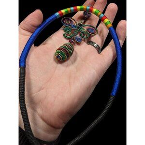 Rainbow Fairycore Wire And Thread Statement Pendant Necklace