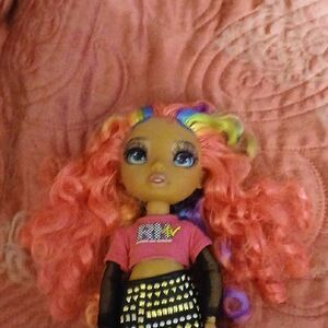 This vibrant fashion doll features a stunning array of rainbow colors in her hair, perfect for imaginative play. Dressed in a stylish outfit, she's ready to inspire creativity and fun. C-2