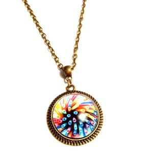 Newly handcrafted from ShopAtLuxe, this necklace features a rainbow fireworks gay pride design in an antique bronze setting with a traditional link chain. The cabochon pendant has a sturdy glass cover, and measures 1.2 inch across. Celebrate LBGTQ Pride in June, or all year round! For more details, see below...