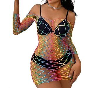 🌈 Rainbow Fishnet Stockings Mesh Lingerie Bodysuit BDSM Bondage Cosplay NWT