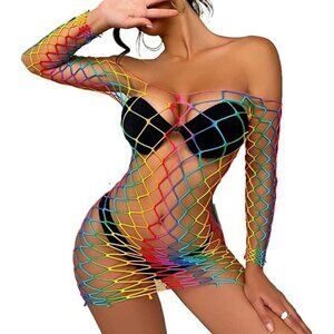 NWT 🌈 Rainbow Fishnet 1 Piece Full Body Stockings Mesh Lingerie Bodysuit Body Soft BDSM Bondage Cosplay NWT 🌈