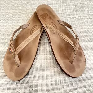 Rainbow Flirty Tan Leather Braided Flip Flops, Very Good Condition!, Ladies 11