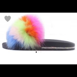 Rainbow Fur Rhinestone Slides
