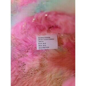 Unbranded Fuzzy Slide Sandals Women 6 Pastel Rainbow Double Buckle.Could be worn out or as slippers. Pink, green. Yellow and purple colors. Hardware is gold colored.