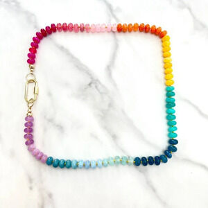 Super fun rainbow gemstone necklace made with a mix of smooth quartz rondelle beads in gorgeous jewel tone colors