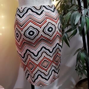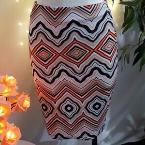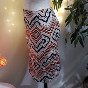 Rainbow Geometric Retro Y2K Trippy Fitted Pencil Skirt Women's M Hippie
