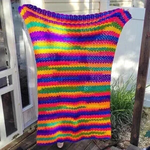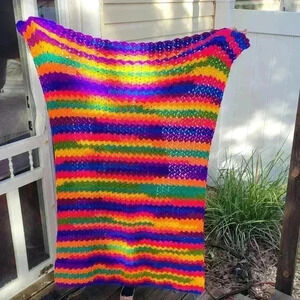 Rainbow Hand Knitted Blanket Crochet Red Orange Blue Green Yellow Teal Purple