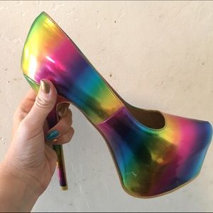 Brand new beautiful rainbow platform heels! Very tall 6" heel with 2" platform.