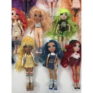 Clean bundle of 15 Rainbow High fashion articulated dolls with clothes, as pictured. Great, clean overall condition. One owner. one doll does not have shoes, shown in photo. 10-11 inch dolls: Stella Monroe, Georgia Bloom, Poppy Rowan, Emi Vanda, Ruby Anderson, Bella Parker and others. Smoke free/pet free. Please review all photos for details and ask any questions. Orders are shipped out daily, Monday – Friday.