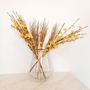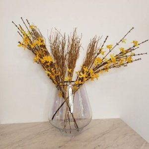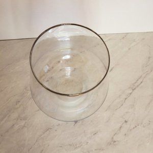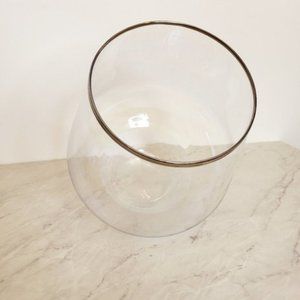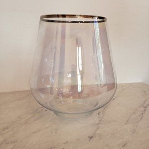 Stunning vessel for your flowers or decorations. Fun rainbow/iridescent finish with gold trim.