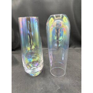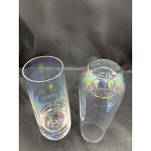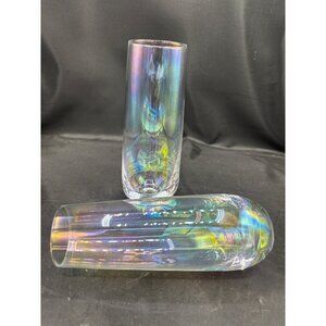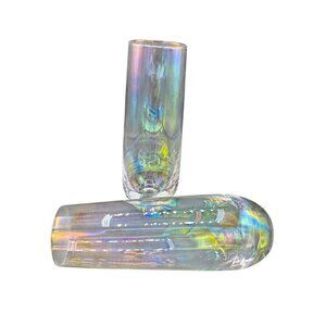 Elevate your celebrations with this set of two rainbow iridescent champagne glasses. Standing at 6 1/4" tall, these glasses add a touch of magic to any toast, making them perfect for special occasions or everyday elegance.