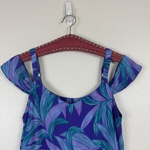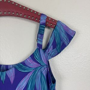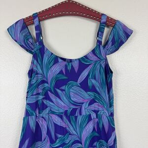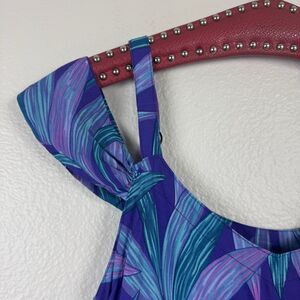 Rainbow Jo Tropical Palm Leaf Print Cold Shoulder Babydoll Dress Purple Aqua S