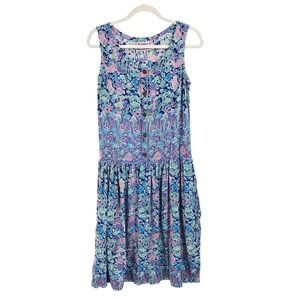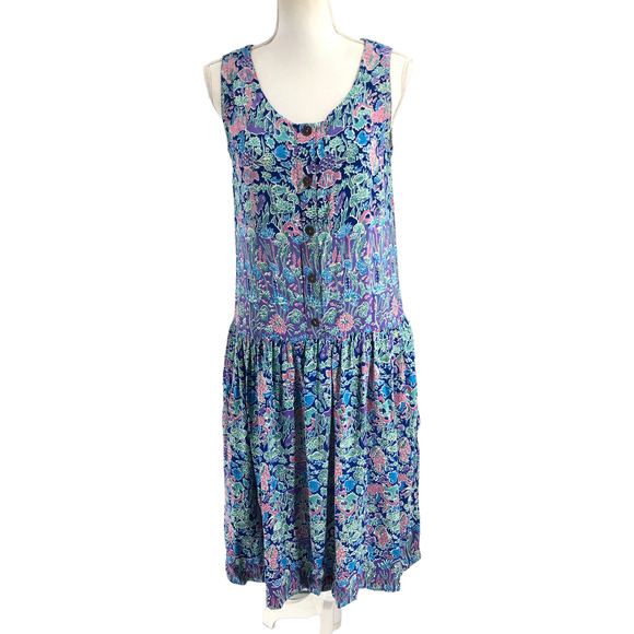 Rainbow Jo Womens Vintage Hawaiian Sleeveless Tropical Print Dress Size Large