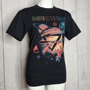 Epic Rainbow Kitten Surprise graphic tee from the “How to: Friend, Love, Freefall” album era. Features a bold cosmic-style design on soft black cotton. No size tag, but fits like a modern unisex Small based on measurements below. Perfect for concerts, fans, collectors, and lovers of indie/alternative music. Graphic is bright, crisp, and super eye-catching.