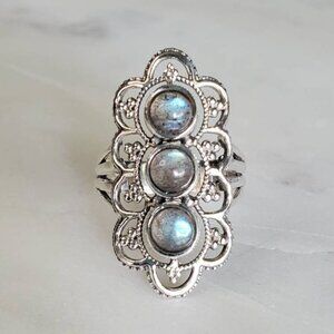 Rainbow Labradorite Ring, Sterling Silver Ring, Shield Ring, Natural Stone Ring,