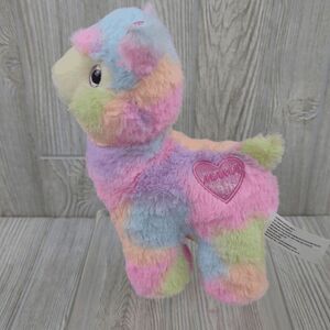 Rainbow Llama Alpaca Plush Mama Patch Sparkly Pink 10"