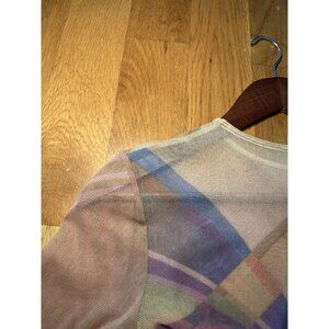 Rainbow Mesh Long-Sleeve Sheer Top – Colorful See-Through Layering Shirt Festiva