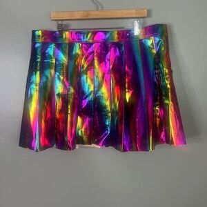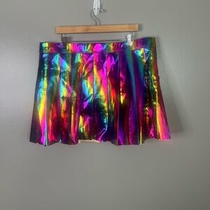 Rainbow Metallic Skirt Wild Cat pleated mini size 2X rainbowcore rave