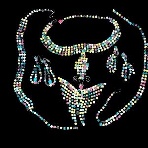 Pristine condition and never worn. 2 pair of earrings and 3 necklaces included in set