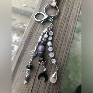 Tags# Crystal Bag Charm / Bag Accessory / Purse Dangle / Novelty Gift / Unique Metaphysical Gift / Best Friend Gift / Beach Bag Charm / Tote Charm / witchy gift / intuitive gift / gift for her / astrology gift / eclectic gift