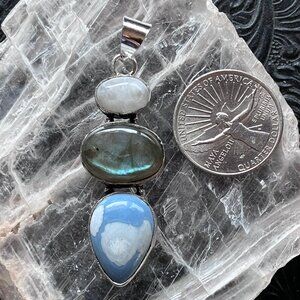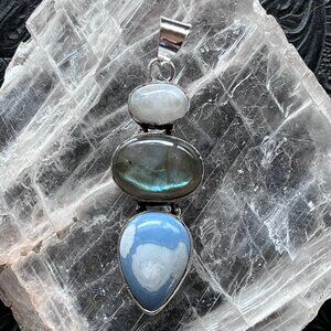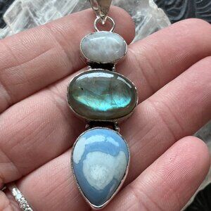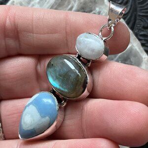 Rainbow Moonstone Labradorite and Blue Opal Pendant Stone Crystal Jewelry