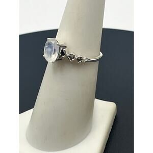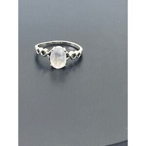 Rainbow Moonstone Oval Prong Set Side Twist Detail Sterling Silver Ring Sz 6.5